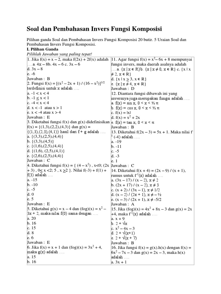 Soal Dan Pembahasan Invers Fungsi Komposisi Docx