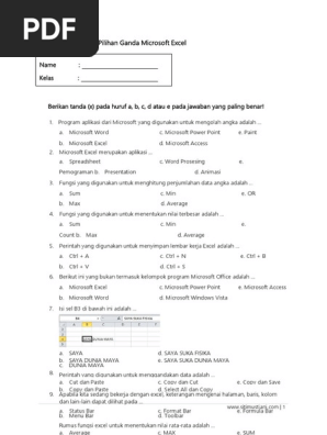 Soal Ulangan Pilihan Ganda Microsoft Excel
