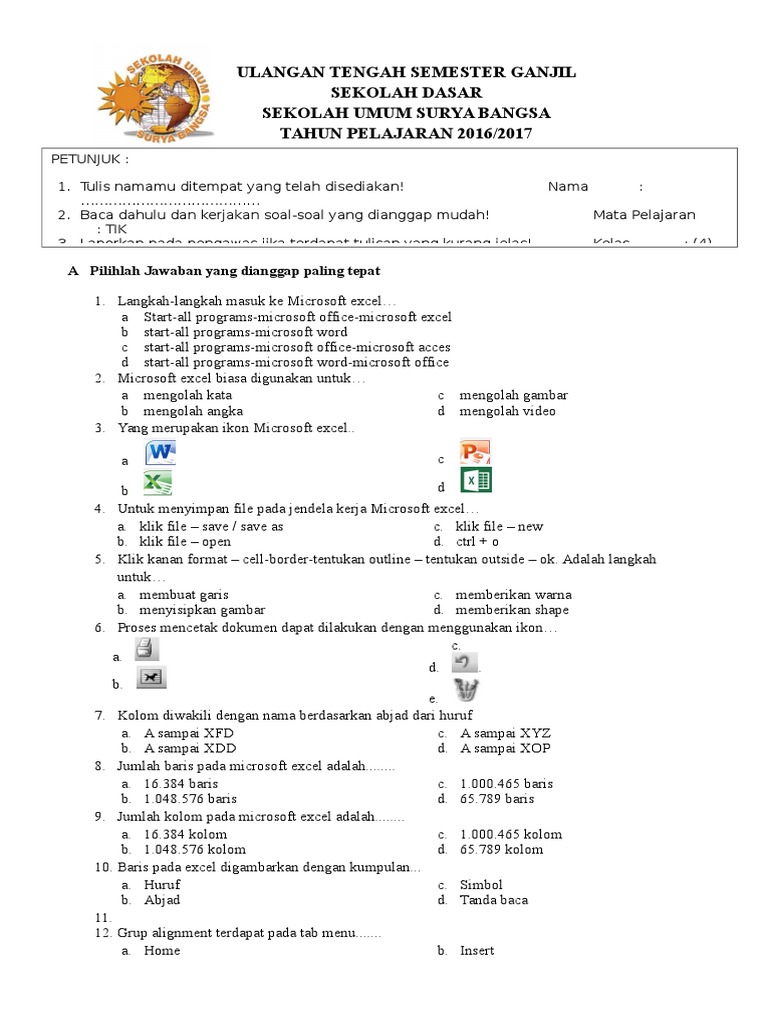 Materi Teknologi Informasih Teknologi informasi dan komunikasi TIK adalah salah satu pelajaran yang menangani informasi sehingga terkait dengan pengumpulan penyimpanan. 13 Soal Dan Jawaban Tentang Microsoft Word Dan Excel Materi Belajar. Soal Uts K13 Kelas 4 Semester 1 Dan 2 Dilengkapi Kunci Jawaban Semester Education Words.